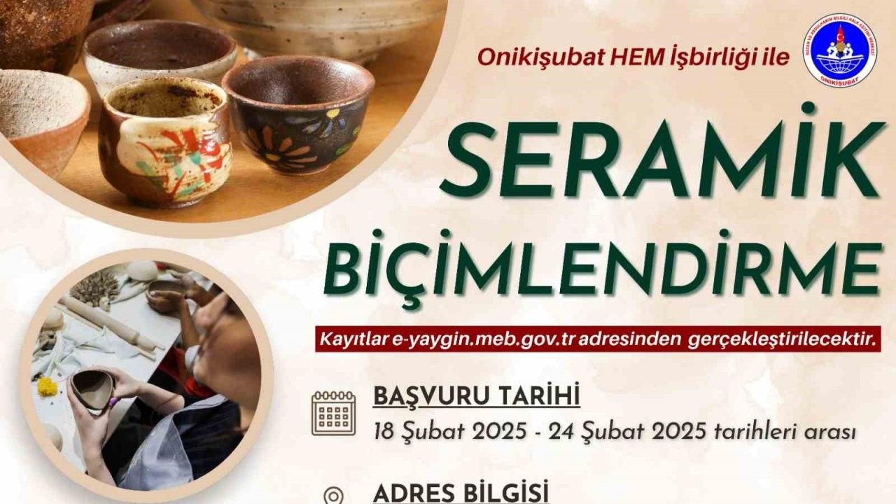 Sanata ilgi duyan ve el becerilerini geliştirmek isteyen vatandaşlar için kaçırılmayacak bir fırsat olacak Seramik Biçimlendirme Kursu, özellikle kadınlara meslek edindirecek ve gelir sağlayacak olmasıyla dikkat çekiyor.
