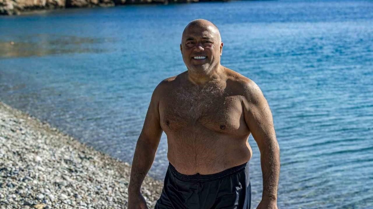 Antalya’da hava sıcaklığı 5 derece birden düşmesine rağmen sahillerinde kar manzarası eşliğinde denize giriliyor. 16 yıldır yaz-kış denize giren 60 yaşındaki güreş antrenörü ise kıyıdan yüzlerce metre açılınca yürekleri ağza getiriyor. Herkesin kendini boğulduğunu zannettiği yönünde ihbarlarda bulunduğunu belirten güreş antrenörü, “Sürekli deniz polisi geliyor yanıma, yardım lazım olup olmadığını soruyorlar. Ben ise açıkta yunus ve fok balıklarıyla oyun oynuyorum” dedi.