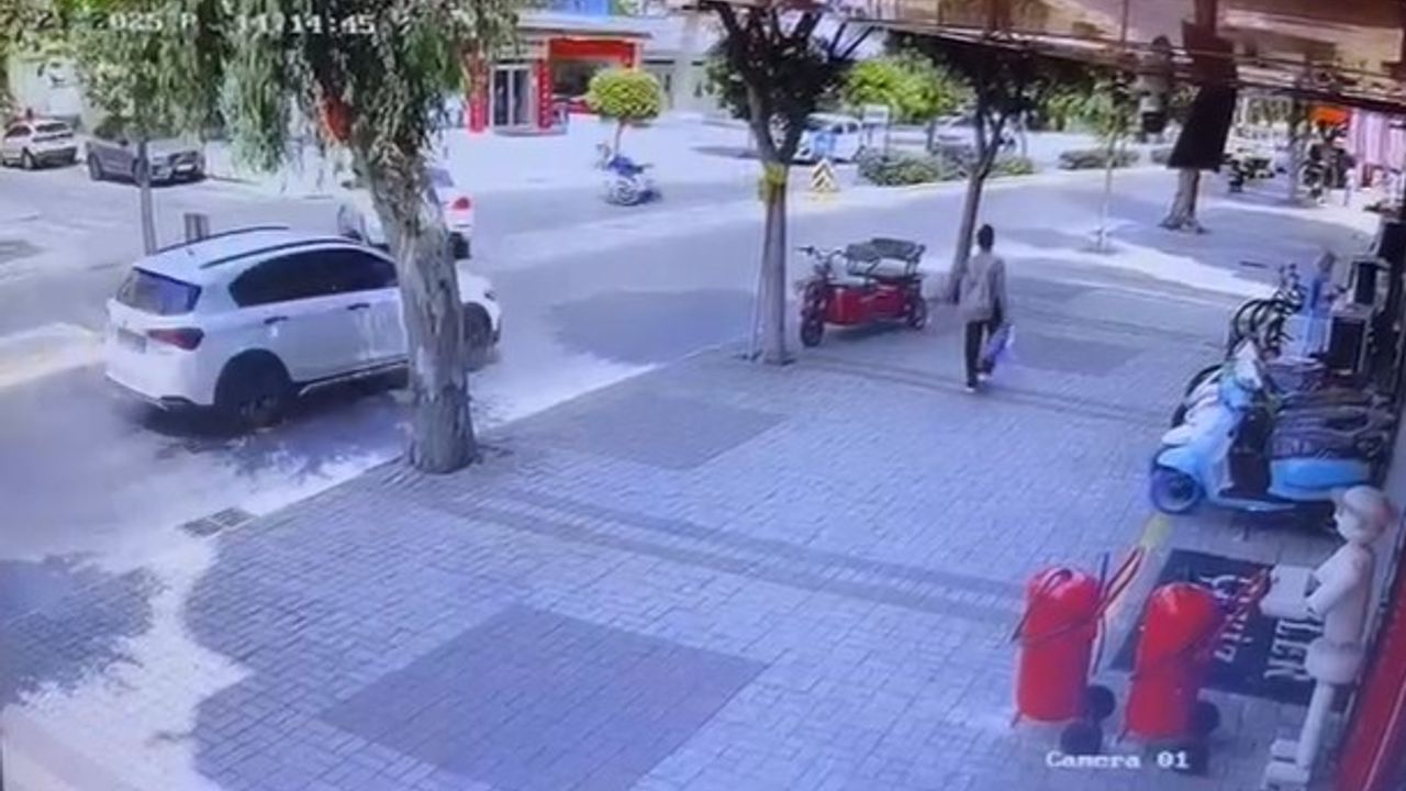 Öte yandan, kaza anı çevredeki bir iş yerinin güvenlik kamerasına saniye saniye yansıdı.