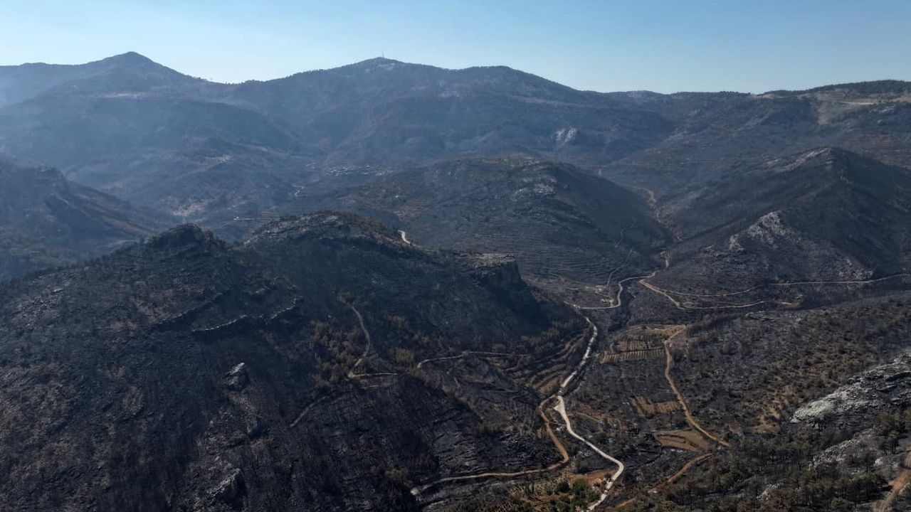 Mersin’in Silifke ilçesinde 3 gün boyunca havadan ve karadan binden fazla personelin müdahalesiyle söndürülen orman yangını sonrasında ortaya çıkan acı manzara havadan görüntülendi.