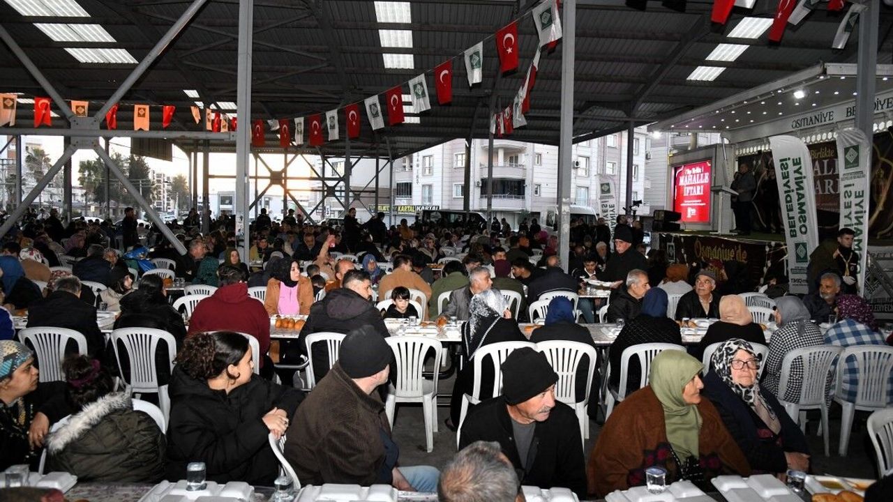Osmaniye Belediyesi, Ramazan ayının ilk mahalle iftarını 'Hep Birlikte Mahalle İftarı' sloganıyla Cumartesi Kapalı Semt Pazarı'nda gerçekleştirdi. Ramazan ayının manevi atmosferinde düzenlenen iftar programında vatandaşlar aynı sofrada buluşarak birlik ve beraberlik duygusunu paylaştı.