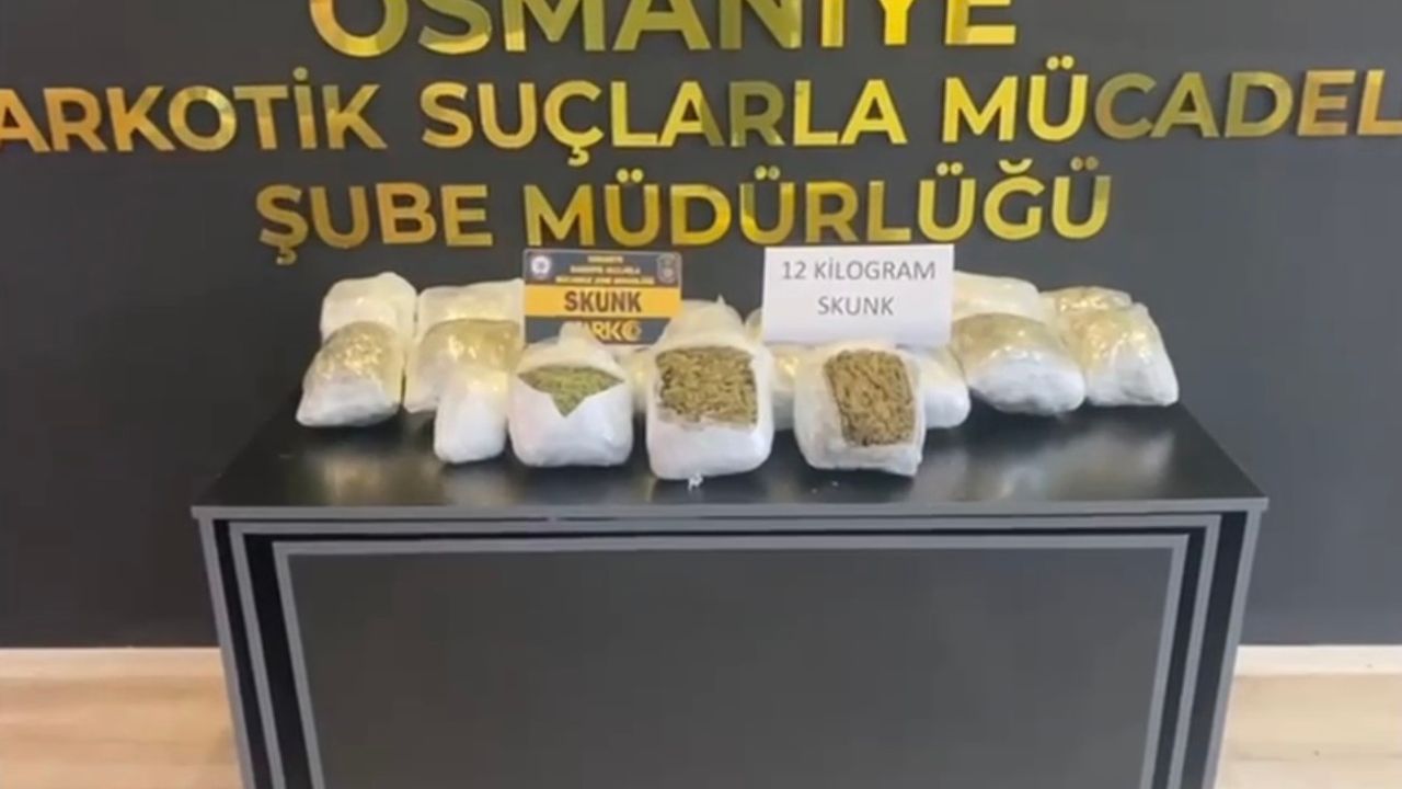 Osmaniye İl Emniyet Müdürlüğü ekiplerince uyuşturucu ile mücadele kapsamında durdurulan hafif ticari araçta yapılan aramada 12 kilogram skunk ele geçirildi.