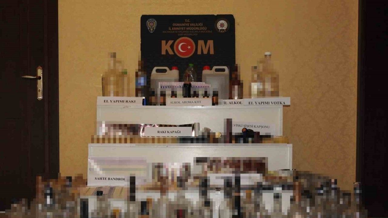Osmaniye İl Emniyet Müdürlüğü Kaçakçılık be Organize Suçlarla Mücadele ekiplerince, kaçak ve sahte alkol ile alakalı çalışma başlatıldı. Bu çerçevede, Osmaniye ve Adana’da belirlenen üç ayrı adrese eş zamanlı baskın düzenlendi. İkametlerde yapılan aramalarda ise 9 litre etil alkol, 6 viski, 2,5 litre el yapımı votka, 1,75 litre el yapım rakı, 1 likör, 1 şarap, 11 aroma kiti, 462 alkollü şişe kapüşonu, 222 rakı şişesi kapağı, 925 viski şişesi etiketleri, 200 viski şişesi kapak üstü etiketi, 189 yabancı menşeili bandrol, 164 sahte TABDK bandrolü ve 1322 şişe kapağı koruma jelatini ve 83 çeşitli markalarda cinsel içerikli hap ele geçirildi.