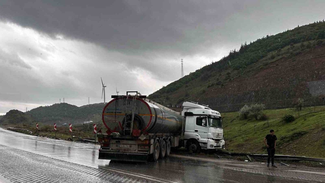 Osmaniye’de kontrolden çıkan tanker bariyerlere çarparak durdu.
