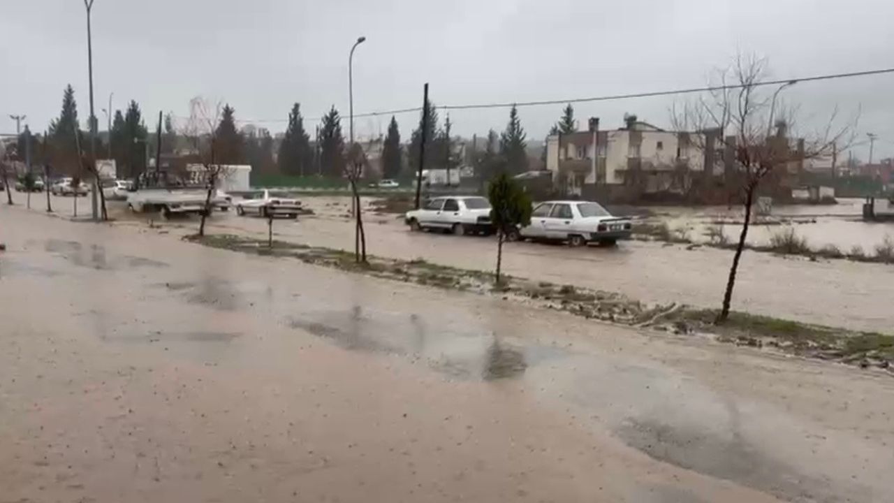 Osmaniye'nin Toprakkale ilçesinde sağanak yağış nedenyle birçok noktada taşkınlar meydana gelirken, debisi yükselen derede bir işçi servisi mahsur kaldı.