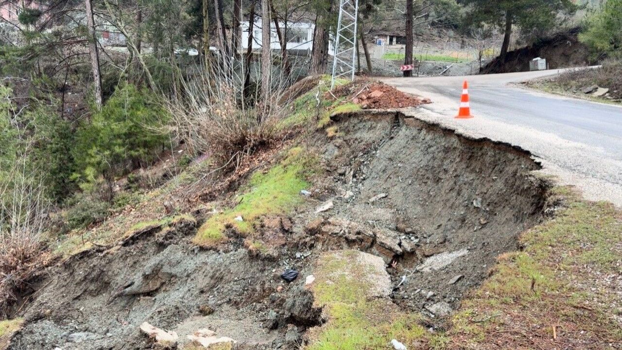 Osmaniye'nin Bahçe ilçesinde yoğun yağış nedeniyle yolda çökme meydana geldi.