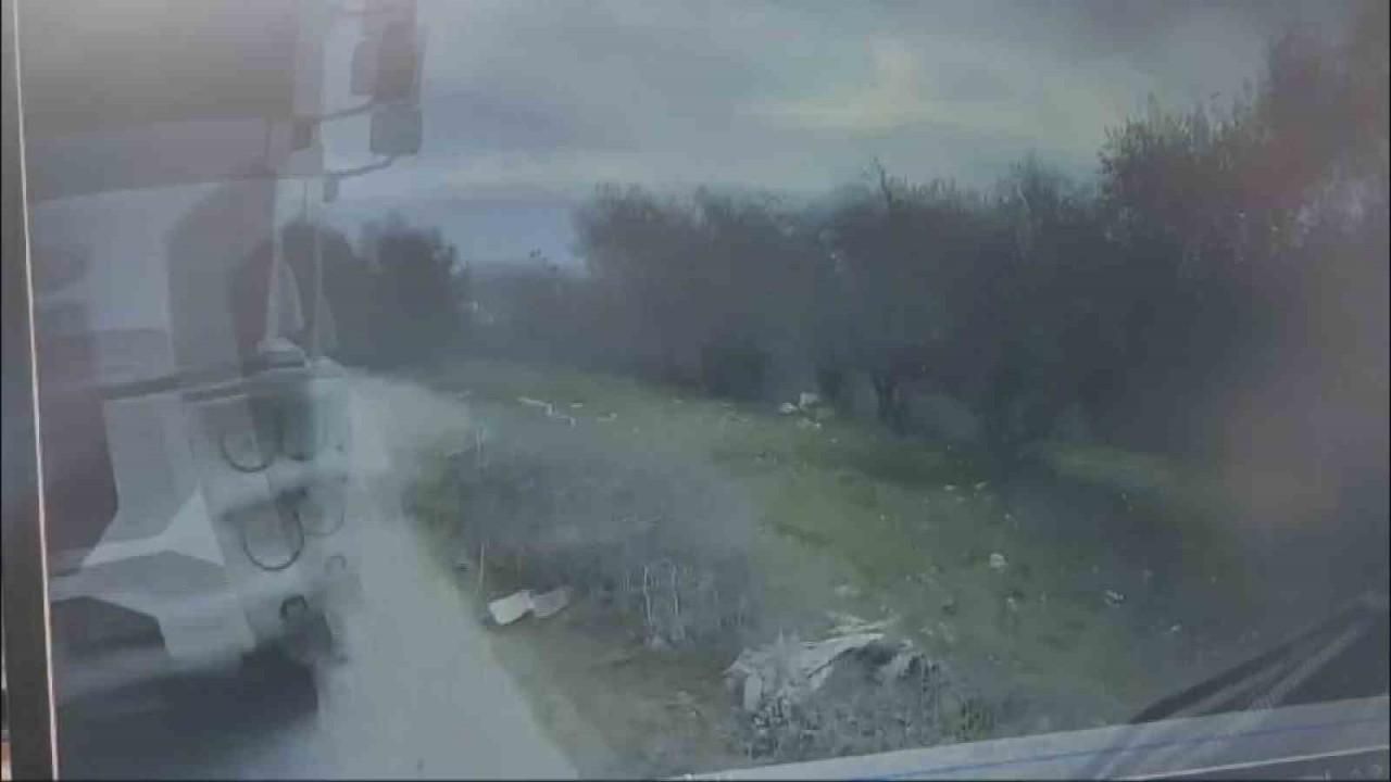 Hatay’ın Antakya ilçesinde hafriyat kamyonu ile halk otobüsünün çarpışmasına ramak kala sürücünün yaptığı manevra faciayı önledi, o anlar kameraya yansıdı.