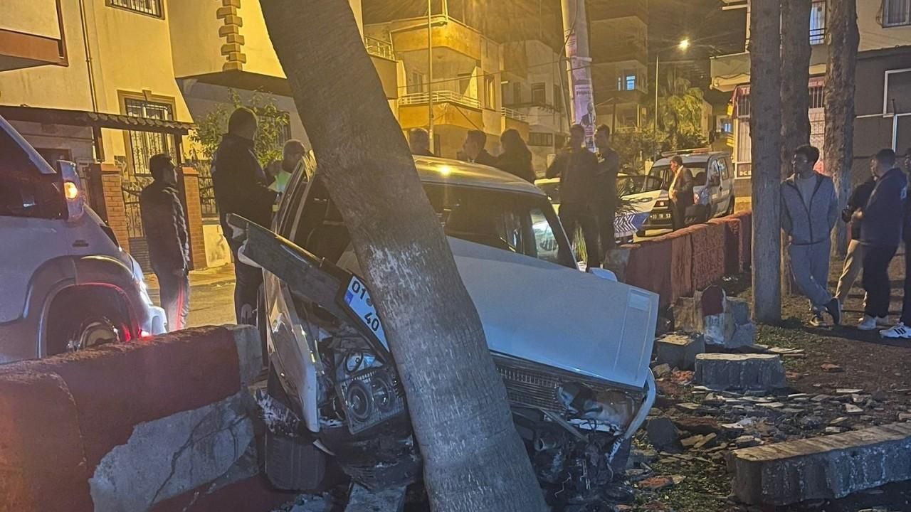 Mersin’in Toroslar ilçesinde sürücüsünün kontrolünden çıkan araç, parkta bulunan ağaçlara çarparak durabildi.