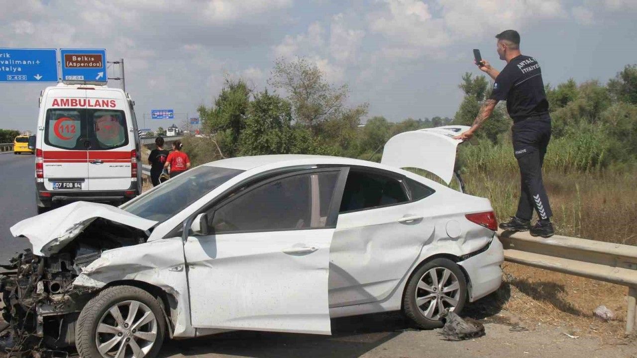 Kaza, saat 11.00 sıralarında Manavgat ilçesi Manavgat - Serik D400 Kara yolu Aspendos köprüsü mevkiinde meydana geldi. Edinilen bilgiye göre, ismi öğrenilemeyen Kazakistan uyruklu sürücü idaresindeki 34 BJL 019 plakalı otomobil sürücünün direksiyon hakimiyetini kaybetmesi sonucu yol kenarında bulunan demir bariyerlere çarptı. Kazada otomobil sürücüsü ve otomobilde yolcu konumunda bulunan bir kişi yaralandı. Çevredeki vatandaşların ihbarı üzerine olay yerine itfaiye, sağlık ve polis ekipleri sevk edildi. Yaralılar otomobilde sıkıştıkları yerden kendi imkanları ile çıkarken sağlık ekiplerinin tarafından olay yerinde ayakta tedavileri yapıldı. Yaralıların durumlarının iyi olduğu öğrenilirken kazayla ilgili tahkikat başlatıldı.