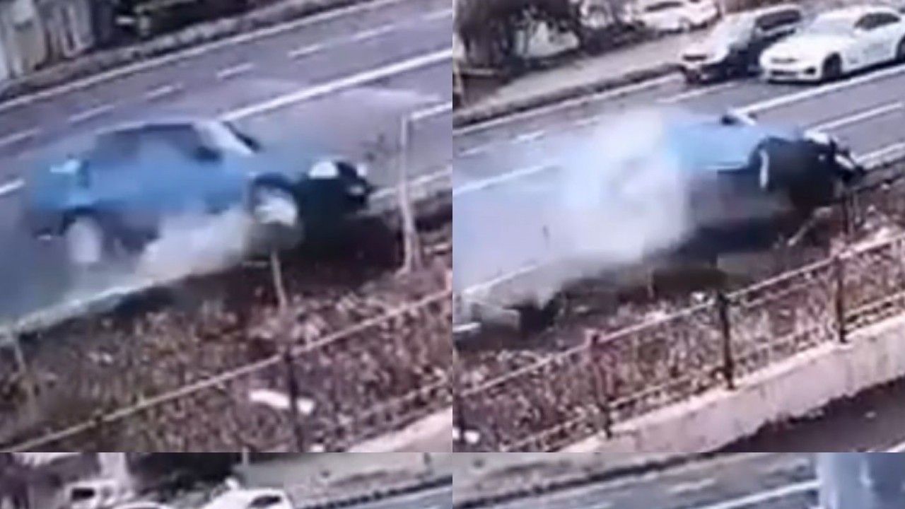 Kaza anına ait güvenlik kamerası görüntülerü de ortaya çıktı. Görüntüye otomobilin savrularak bariyerlere vurarak kanal düşme anı yansıdı.