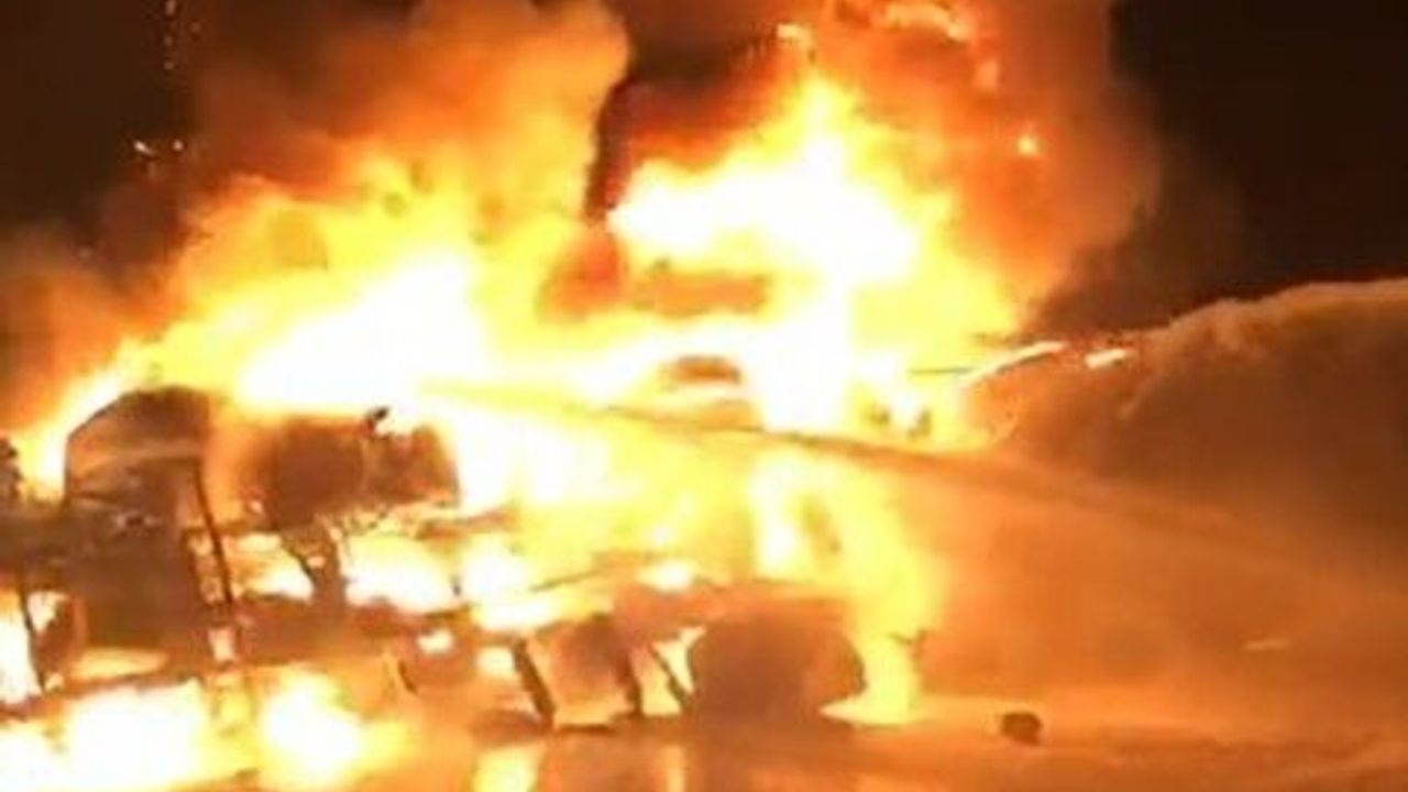 Adana’da otoyolda devrilen akaryakıt yüklü tanker alev alev yandı. Yangın itfaiyenin uzun uğraşları sonucu söndürüldü.