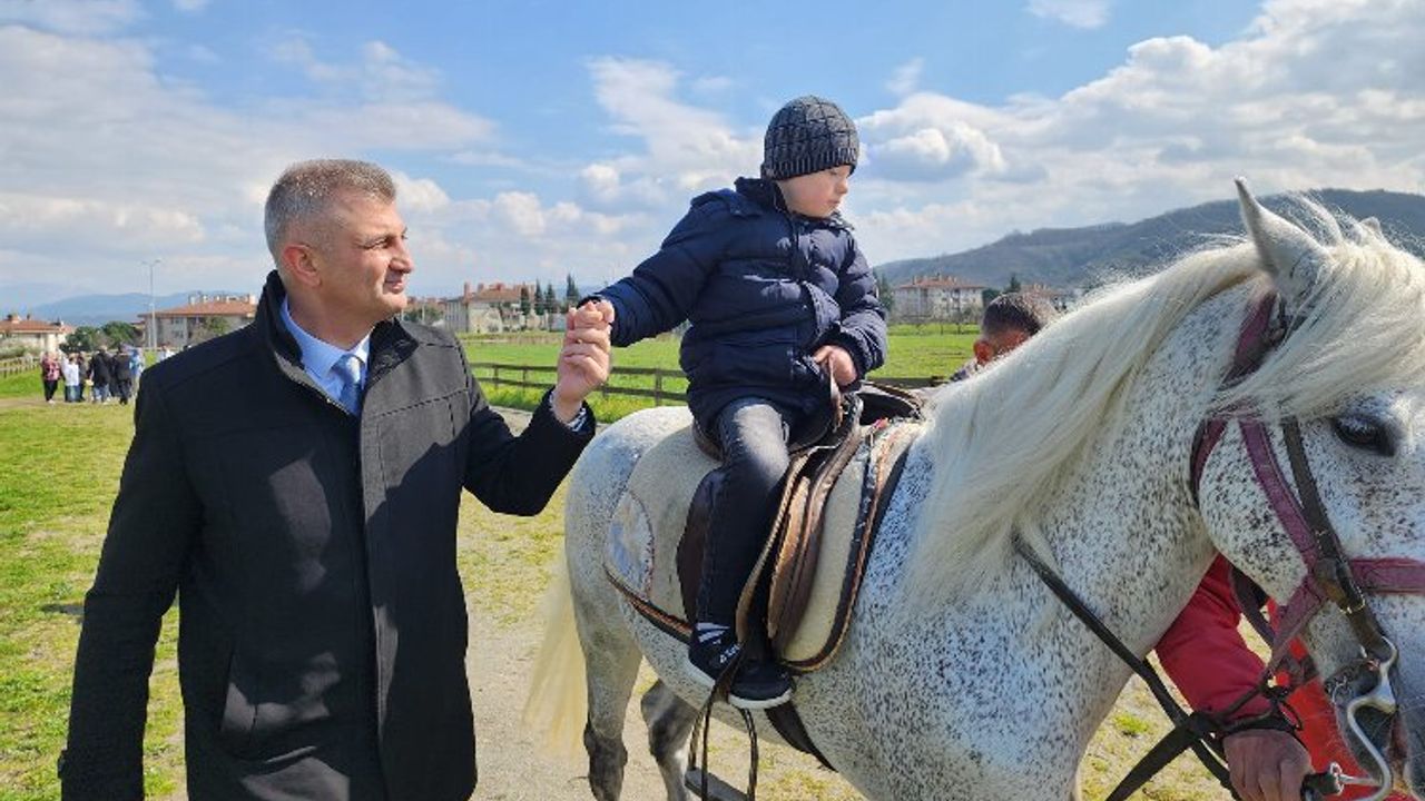 Gölcük Belediye Başkanı Ali Yıldırım Sezer, 21 Mart Dünya Down Sendromu Farkındalık Günü’nde özel bireyler at binme heyecanlarına ortak oldu.KOCAELİ (İGFA) - Gölcük’te yaşayan özel bireyler, Gölcük Belediyesi Rahvan At Bakım ve Konaklama Tesisleri’nde at binme heyecanı yaşadılar. +1 Farkla Gölcük Down Sendromlular Derneği üyesi özel bireyler, Dünya Down Sendromu Farkındalık Günü’nde Gölcük Belediyesi’nin konuğu olarak Rahvan At ve Konaklama Tesisleri’ni ziyaret ettiler. Ziyarette özel bireyleri karşılayan Gölcük Belediye Başkanı Ali Yıldırım Sezer, atlarla yakından ilgilenen çocuklara eşlik etti. Başkan Sezer daha sonra birlikte piste çıktıkları özel bireylerin at binme heyecanlarına ortak oldu.