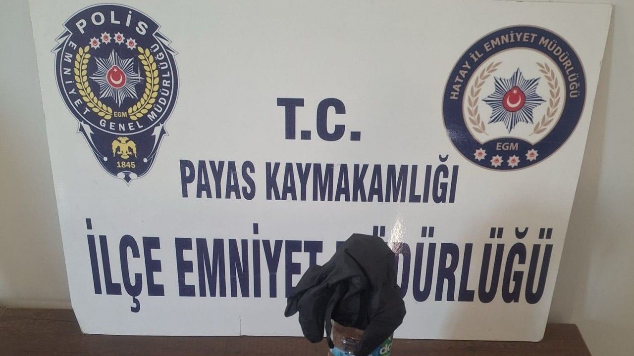 Cumhuriyet Mahallesi üzerinde Payas İlçe Emniyet Müdürlüğüne bağlı ekiplerin devriye görevi esnasında şüpheli A. İ. G. isimli şahıs polisi karşısında görünce şüpheli hareketlerde bulunarak elindeki şeffaf pet su şişesini yol kenarında bulunan bahçeye attı.
