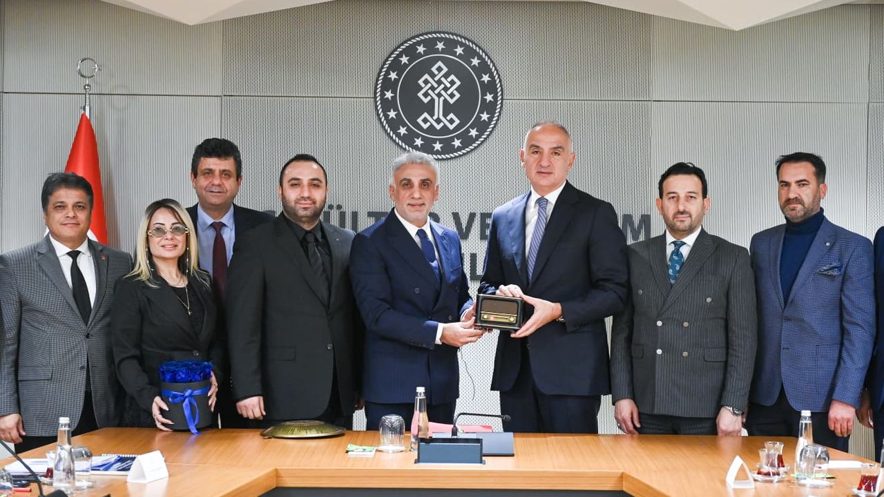 Radyo ve televizyon yayıncıları meslek birliği Başkanı Vedat Gündoğan ve Yönetim kurulu üyeleri, Kültür ve Turizm Bakanı Mehmet Nuri Ersoy’u makamında ziyaret etti.