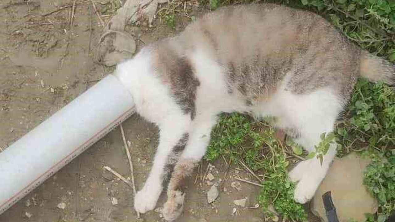 Hatay’ın Samandağ ilçesinde boruya sıkışan kedi itfaiye ekiplerinin müdahalesiyle kurtarıldı.