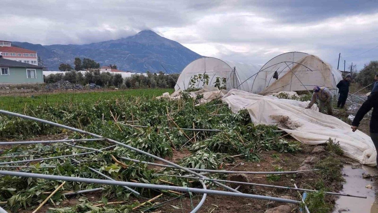 İlçeye bağlı Tekebaşı Mahallesi’nde sabah saatlerinde oluşan hortum salatalık, domates ve biber üretimi yapılan seralara zarar verdi. Şiddetli hortum seraların örtülerini parçalarken zeytin ağaçlarını da kökünden kopardı. Hortum aynı bölgede bulunan bir lisenin çatısına zarar verdi.