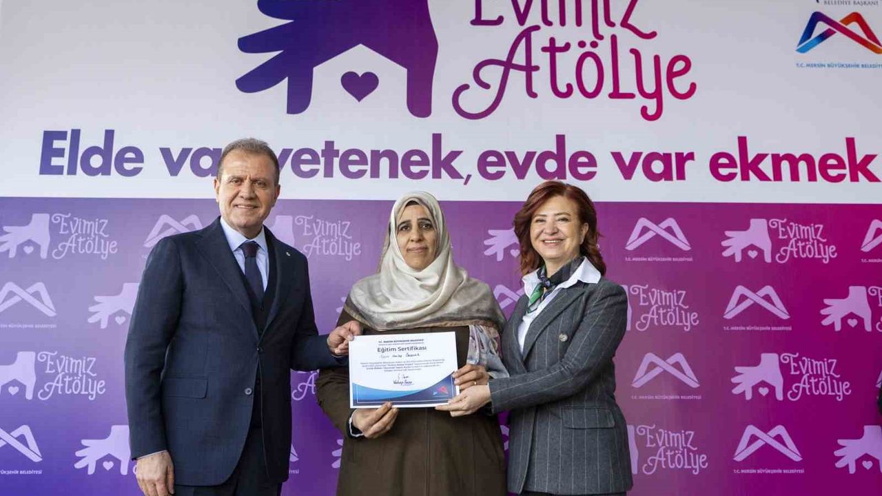 Başkan Seçer, Mersinden Kadın Kooperatifi Başkanı Meral Seçer ile birlikte ‘Elde var yetenek, evde var ekmek’ sloganıyla yürütülen, ‘Evimiz Atölye’ projesi kapsamında oyuncak yapım atölyesini tamamlayan kadınlarla sertifika töreninde bir araya geldi.