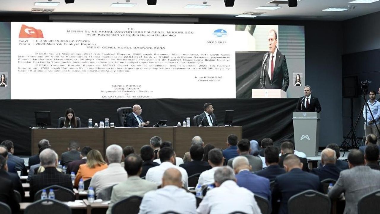 Mersin Su ve Kanalizasyon İdaresi (MESKİ) Genel Müdürlüğü’nün 2024 Yılı Mayıs Ayı Olağan Genel Kurul Toplantısı, Büyükşehir Belediye Başkanı Vahap Seçer başkanlığında gerçekleştirildi. Kongre ve Sergi Sarayı Çok Amaçlı Salonda gerçekleştirilen toplantıda 6 madde görüşüldü. Mersin Büyükşehir Belediyesinin yeni logosunun su renginin de MESKİ Genel Müdürlüğü’nün yeni logosu olması ve 2023 Mali Yılı Faaliyet Raporu oy çokluğu ile kabul edildi. Genel Kurulu Faaliyet Raporunun görüşüldüğü maddede mevzuat gereği Meclis Birinci Başkan Vekili Ali Uyan yönetti.