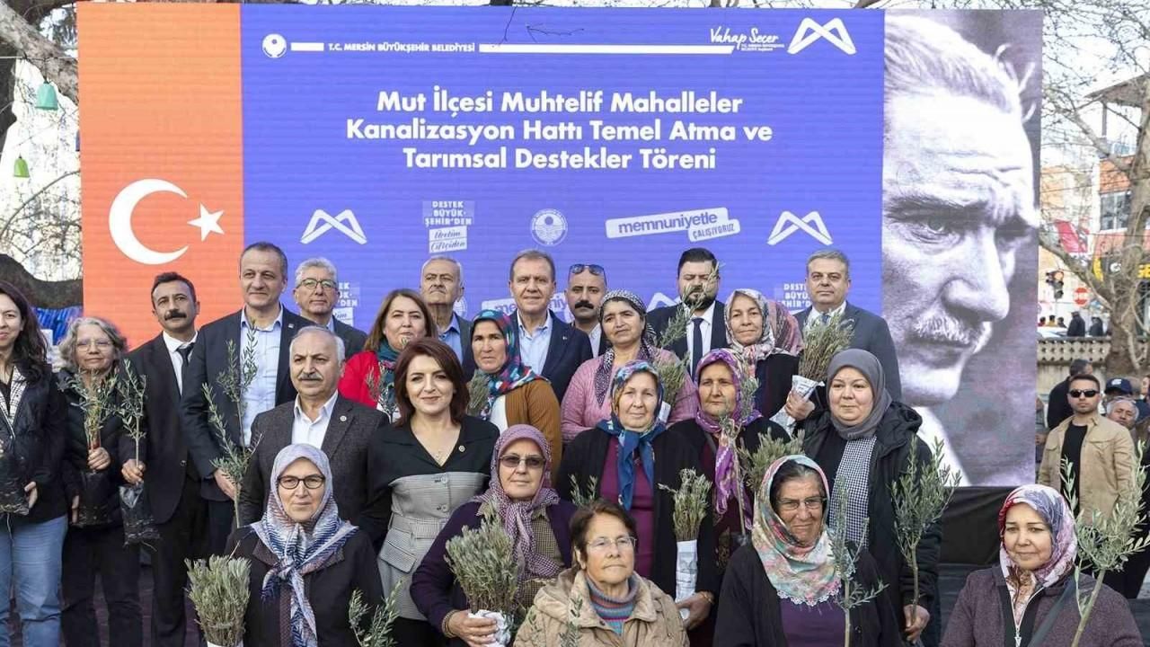 ‘Mut Tarımsal Destekler Töreni’ kapsamında Mut ilçesinde bulunan 42 mahalleden 53’ü kadın olmak üzere 207 üreticiye toplam 6 bin 160 adet zeytin fidanı, 5 üreticiye 4 bin 100 adet lavanta fidesi, 26 adet makine-ekipman ile 28 sulama kooperatifine 29 bin 758 metre sulama borusu desteği sağlandı.