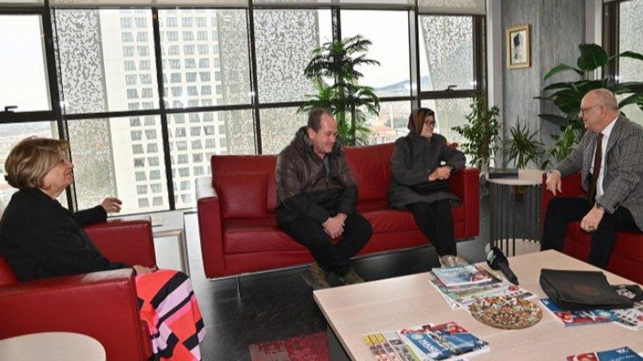 MANİSA (İGFA) - Kayseri'de Erkilet 12’nci Hava Ulaştırma Ana Üs Komutanlığından eğitim uçuşu için havalanan askeri nakliye uçağının düşmesi sonucu 2001 yılında şehadet şerbetini içen Pilot Üsteğmen Okan Divrik’in annesi Nevin Divrik ile kardeşi Hakan Divrik, Manisa Büyükşehir Belediye Başkanı Cengiz Ergün’ü ziyaret etti. Anne Nevin Divrik’i elini öperek karşılayan Başkan Ergün, ziyaretleri nedeniyle teşekkür etti.