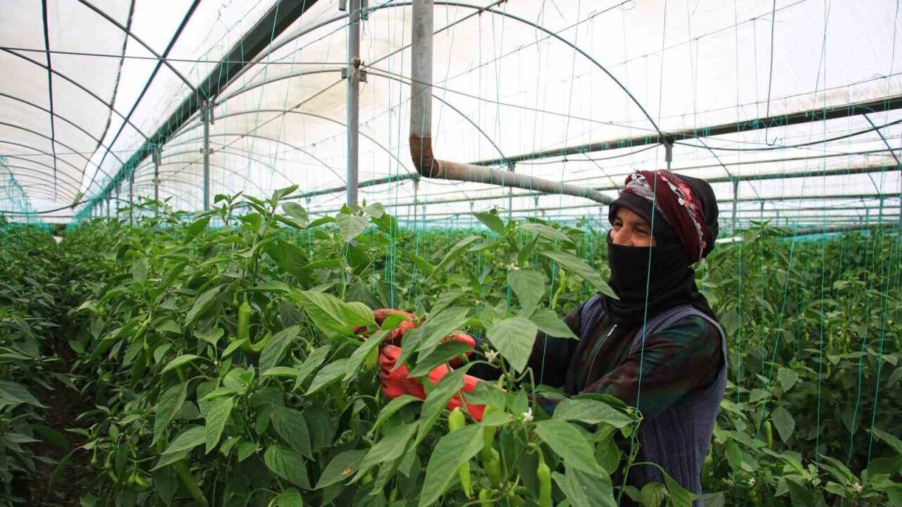 Akdeniz ilçesine bağlı Adanalıoğlu beldesindeki seralarda biber hasadı zor şartlar altında sürüyor. Havaların ısınmasıyla şartları daha da ağırlaşan işçiler, günün 8 saatini seralarda geçirmek zorunda kalıyor. Son günlerde hava sıcaklığı mevsim normallerinin üzerinde seyrederken, oluşan nemle birlikte seralar adeta ’hamam gibi’ olmaya başladı.