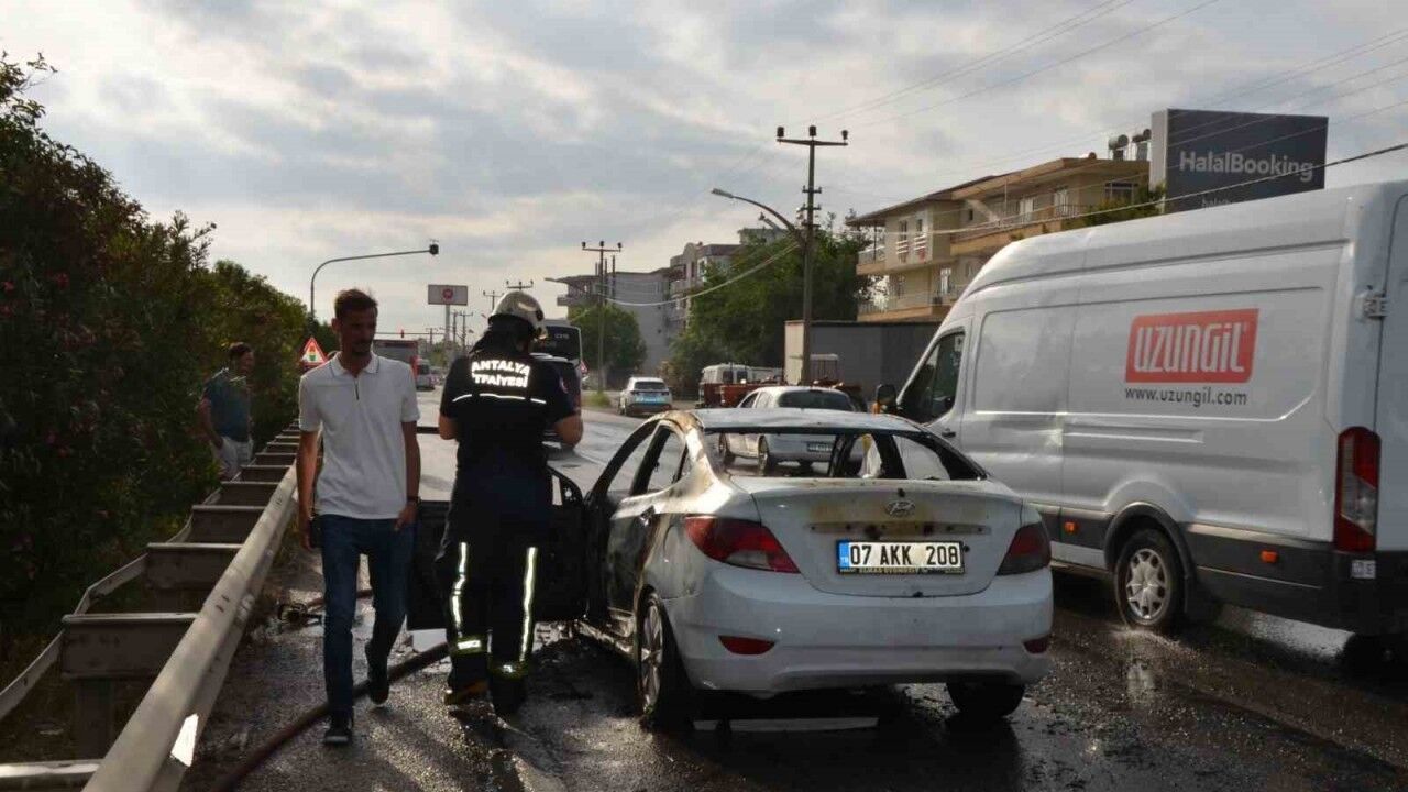Olay, saat 07.30 sıralarında Serik’e bağlı Cumalı kavşağı yakınlarında meydana geldi. Edinilen bilgiye göre, Antalya’dan Serik yönüne doğru ilerleyen, Azerbaycan uyruklu Maksim Aleksandroviç’in kullandığı 07 AKK 208 plakalı kiralama şirketine ait Hyundai marka otomobil, henüz belirlenemeyen nedenden alev aldı. Aracın motor kısmından çıkan dumanları fark eden sürücü, aracı yol ortasında durdurup 112 Acil Çağrı Merkezi’nden yardım istedi. Olay yerine kısa sürede itfaiye ve polis ekipleri sevk edildi. İtfaiye ekiplerinin müdahalesiyle yangın kontrol altına alınarak söndürüldü. Tamamen yanan araç hurdaya döndü. Yangın nedeniyle tek şeritten sağlanan trafik yangının söndürülmesinin ardından tekrar normale döndü. Olayla ilgili inceleme başlatıldı.