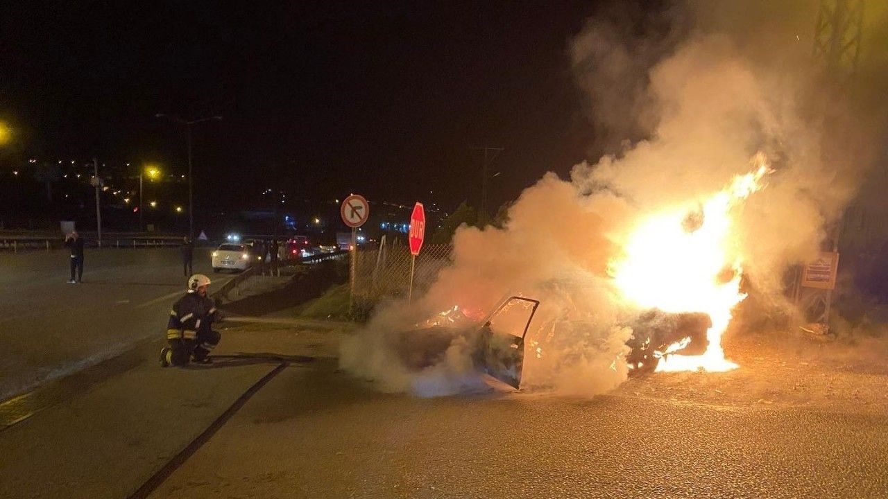 Hatay’da seyir halindeyken alevlere teslim olan Tofaş marka otomobil, yanarak kullanılmaz hale geldi.