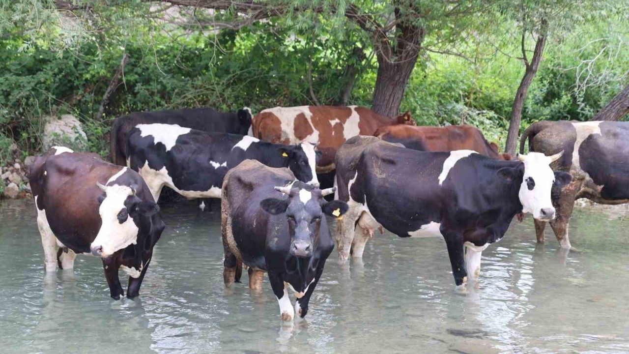 Adana’nın Kozan ilçesinde sıcaklar bunaltınca, cadde ve sokaklar boş kaldı.Kenar mahallelerde ise büyükbaş hayvanların akarsuya girerek serinlemesi dikkat çekti.