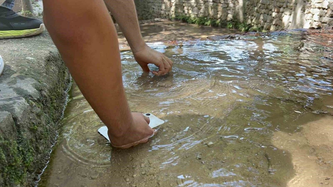 Bir işletmede çalışan 18 yaşındaki Remzi Adıkutlu, aşırı ısınan telefonunu soğutmak amacıyla soğuk akarsuda bulunan ılıcaya koydu. Telefonun soğumasıyla birlikte cihazın sorunsuz çalıştığını belirten Adıkutlu, "Havalar aşırı sıcak, telefon da çok çabuk ısınıyor. Biz de çözümü suda bulduk. Şu anda hava 44 derece, hissedilen sıcaklık ise 49 dereceydi. Telefonu suya koyduk, hem soğudu hem de tertemiz oldu. Herhangi bir sorun yaşamadık" dedi.