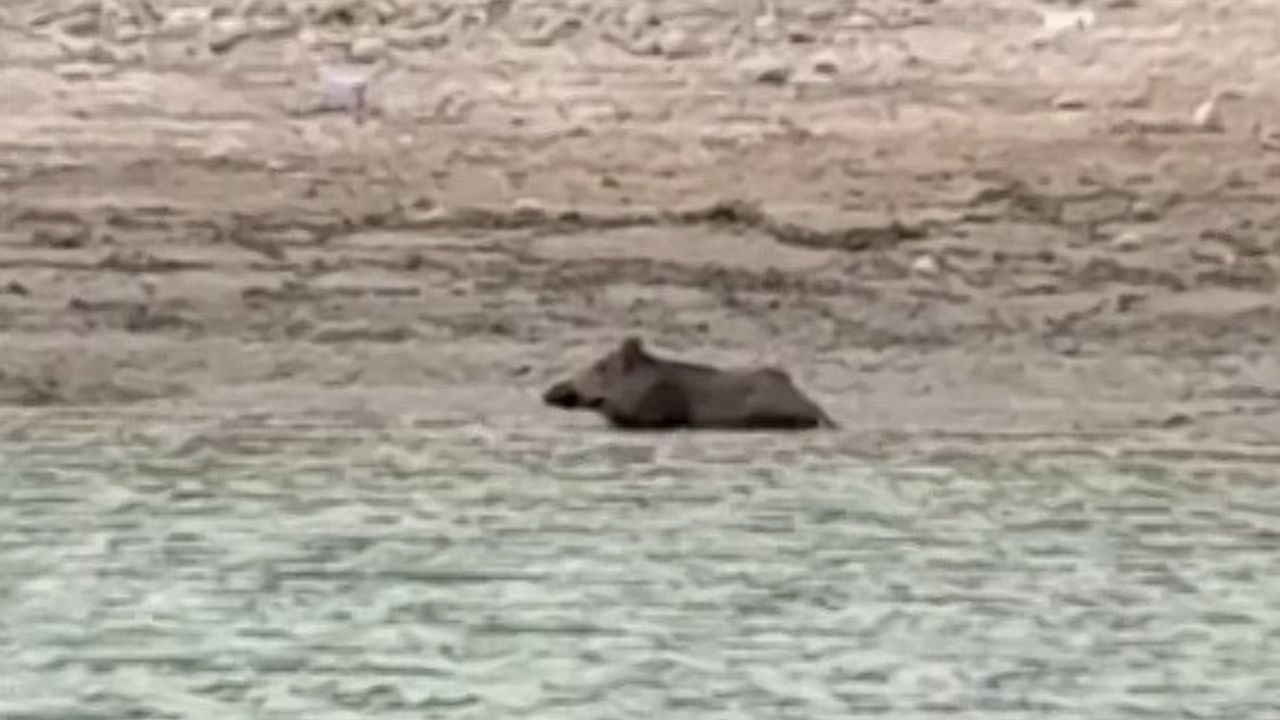 Türkiye’nin en sıcak illerinden Adana’da sıcaktan bunalan bir yaban domuzu, Seyhan Baraj Gölü’nde serinledi. O anlar cep telefonu kamerasına saniye saniye yansıdı.