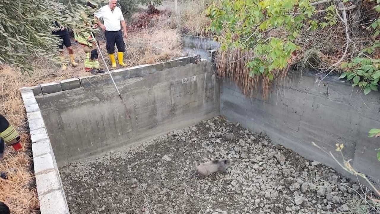 Hatay’ın Arsuz ilçesinde boş sulama havuzuna düşen domuz, itfaiye ekiplerinin çalışmasıyla kurtarılarak yeniden doğaya bırakıldı.