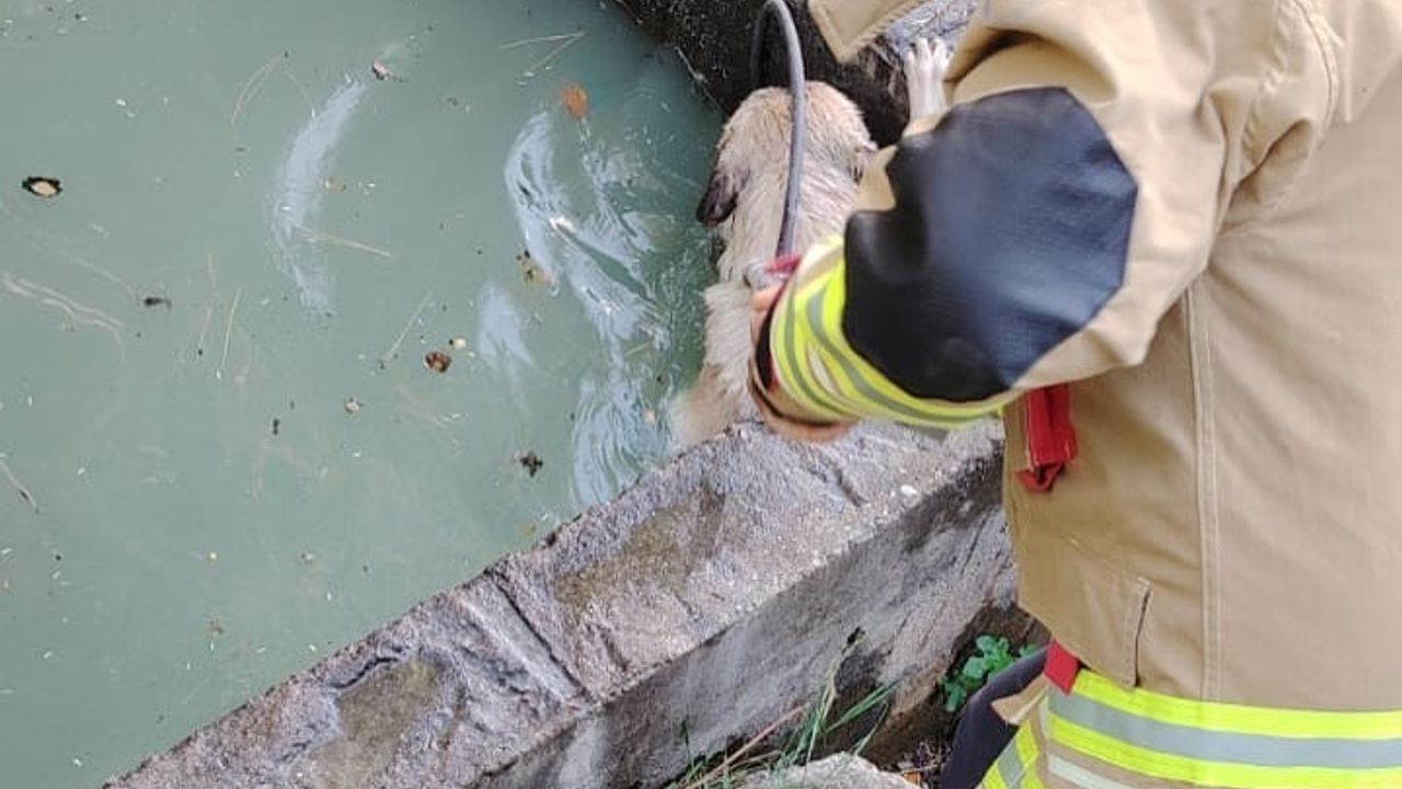 Hatay’da sulama kanalına düşerek mahsur kalan köpeği itfaiye kurtardı.