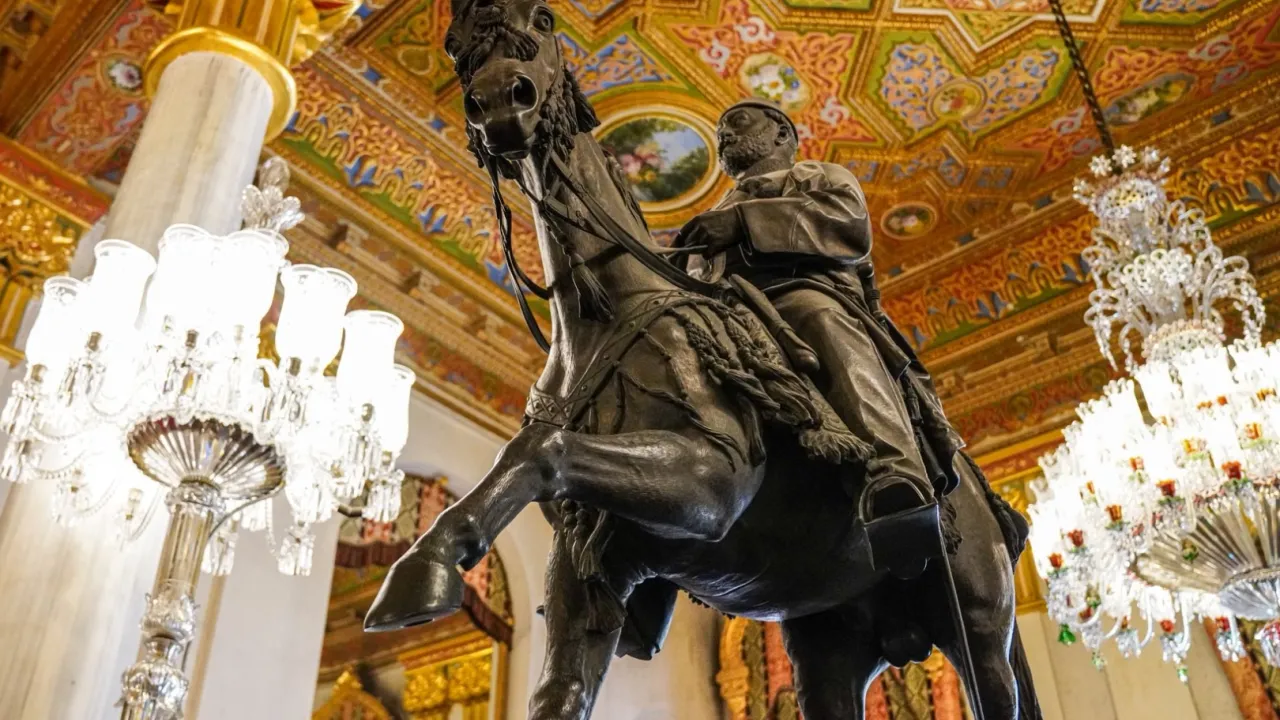 Milli Saraylar İdaresi, Sultan Abdülaziz’in 1871 yılında Floransalı sanatçı C. F. Fuller tarafından tasarlanan bronz atlı heykelinin hikayesini paylaştı. Dolmabahçe Sarayı’nda sergilenen ve daha sonra Topkapı Sarayı’na taşınan heykel, bugün Beylerbeyi Sarayı’nın Havuzlu Salonu’nda yer alıyor.İSTANBUL (İGFA) - Milli Saraylar İdaresi, 28 Temmuz 2025 tarihinde sosyal medya hesabından, Sultan Abdülaziz’in atlı heykeline ilişkin tarihi bilgileri kamuoyuyla paylaştı.