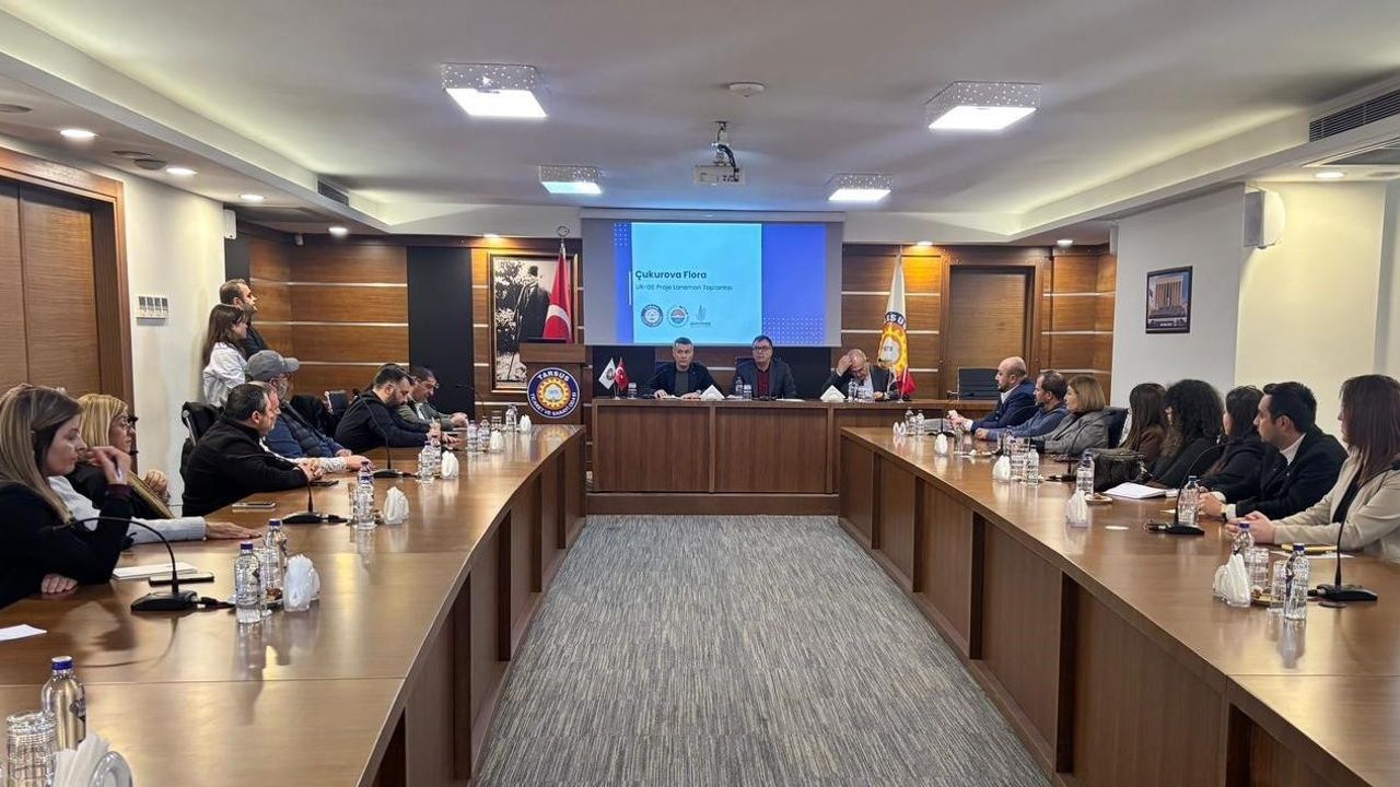 Süs Bitkiciliği UR-GE Projesi 'Çukurova Flora' için ilk tanıtım ve istişare toplantısı Tarsus TSO ev sahipliğinde gerçekleştirildi. MTSO Yönetim Kurulu Başkanı Hakan Sefa Çakır, Tarsus TSO Yönetim Kurulu Başkanı Ruhi Koçak ve Agropark Genel Müdürü Murat Hocagil'in katıldığı toplantıda proje detayları, hedefler ve yol haritası paylaşıldı.