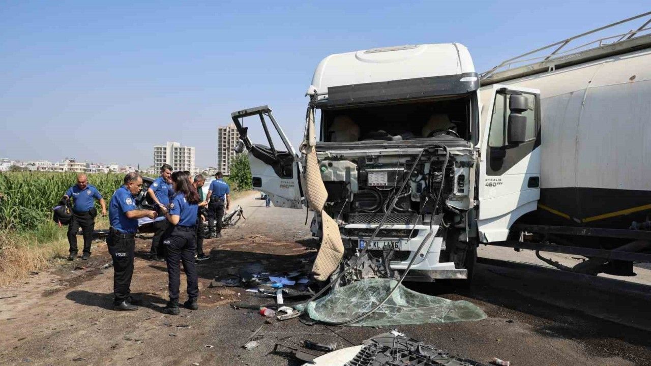 Edinilen bilgiye göre, kaza, saat 10.00 sıralarında Yüreğir ilçesi Sezai Karakoç Bulvarı’nda meydana geldi. Muhammed Bahiddin Akyol’un kontrolündeki 34 KL 4436 plakalı tanker, sürücüsünün direksiyon hakimiyetini kaybetmesi sonucu karşı şeritte kırmızı ışıkta bekleyen Burak Küçük yönetimindeki 31 AVF 419 plakalı otomobile çarptı. Bu sırada İsmail Hakkıyalçın kontrolündeki 01 PB 298 plakalı kamyon ise tankerden kaçarken yan devrildi. Otomobil ise hurdaya döndü.
