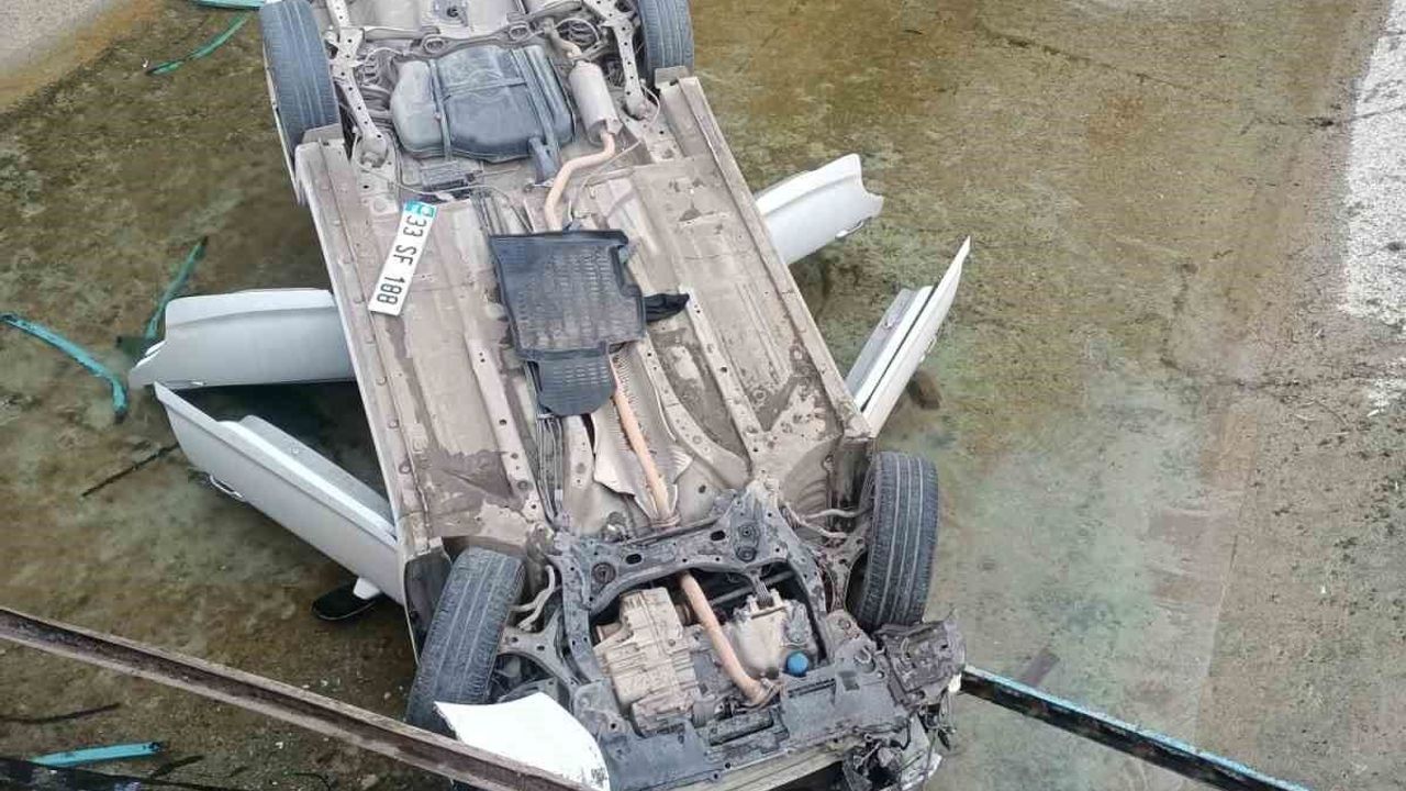 Mersin’in Tarsus ilçesinde kontrolden çıkan araç boş sulama kanalına uçtu.