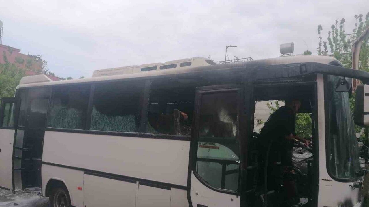 Mersin’in Tarsus ilçesinde servis aracı yandı.