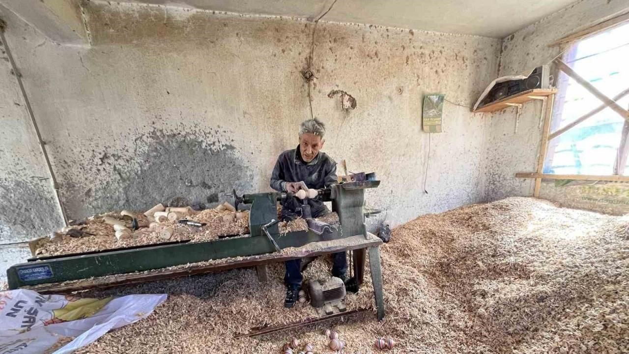 Osmaniye’de unutulmaya yüz tutmuş geleneksel oyunlardan olan topacı gelecek nesillere taşımak isteyen Bekir Altay, 25 yıldır evinin bahçesinde ahşaba şekil veriyor.