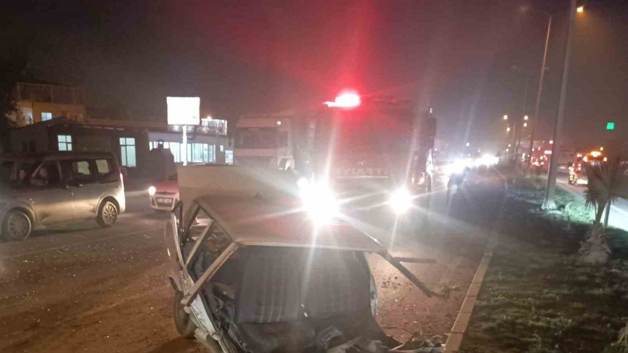 Hatay’da tırla çarpışıp ikiye bölünen Tofaş marka otomobilin sürücüsü yaralandı.