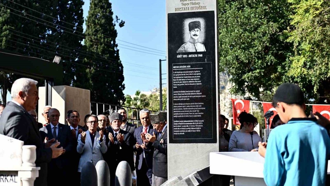 Birinci Dünya Savaşı yıllarında Meis Limanı’nda demirli deniz uçağı gemisini karadan topçu atışlarıyla batırarak dünya savaş tarihine adını yazdıran Topçu Yüzbaşı Mustafa Ertuğrul Aker, Antalya Andızlığı Mezarlığı’ndaki anıt mezarı başında düzenlenen törenle anıldı. Muratpaşa Belediyesi tarafından gerçekleştirilen anma törenine Başkan Uysal’ın yanı sıra, Muratpaşa Kaymakamı İhsan Kara, askeri erkan ve öğrenciler katıldı.