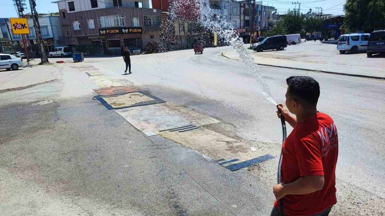 Adana’da bir mahallede alt yapı çalışması nedeniyle bozulan yol belediye tarafından bir türlü asfaltlanmayınca esnaf oluşan tozun önüne geçmek için yola eski halıları sermişti. Ancak bu da çare olmayınca esnaf bu kez de halıları sulamaya başladı.