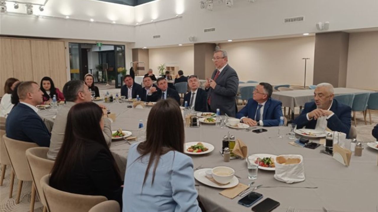 Trakya Üniversitesi heyeti, Burgaz’daki Türk belediye başkanları ile bir araya geldiErdoğan DEMİR / EDİRNE (İGFA) - Bulgaristan’ın Burgaz şehrinde bir dizi ziyaretlerde bulunan Trakya Üniversitesi heyeti, Burgaz’daki Türk Belediye Başkanları ile bir yemekte bir araya geldi.
