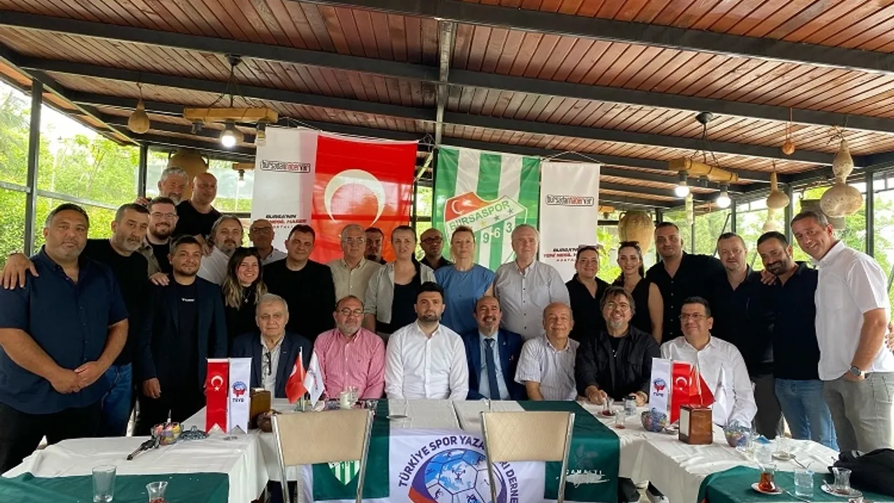 TSYD Bursa Şubesi üyeleri ve spor basını Bursaspor Başkanı Enes Çelik’i ağırladı.BURSA (İGFA) - Cumalıkızık’ta yer alan Çamaltı Kahvaltı adlı mekanda gerçekleştirilen organizasyona Bursaspor Başkanı Enes Çelik’in yanı sıra Kulüp Müdürü Hüseyin Yeşilkavak da katıldı. Toplantının açılış konuşmasını gerçekleştiren TSYD Bursa Şube Başkanı Mehmet Ali Ekmekçi, geçtiğimiz sezonun zorlu ve bir o kadar da heyecanlı geçtiğini belirtirken, basın tribünlerindeki yoğunluğa dikkat çekerken, “Yurt dışından gelen gazetecileri bile misafir ettik” dedi.