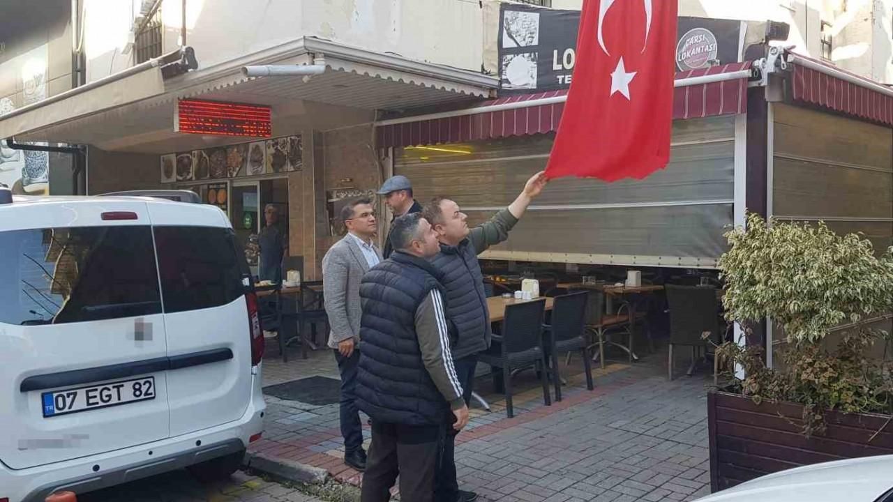 Olay, Antalya’nın Alanya ilçesi çarşı merkezinde bir lokantanın önünde gece saatlerinde meydana geldi. Kamera görüntülerinde bir kişi elindeki bıçakla işyerinin önünden geçerken birden geri dönerek elinde bulunan bıçakla asılı olan Türk bayrağını kesti. Dükkan sahibi ve çalışanlar sabah işyerine geldiğinde bayrağın altının kesilmiş olduğunu fark ettiler. Olay yerine gelen ekipler, işyeri ve çevre esnafların kameralarını incelemeye aldı. Polis işyeri sahipleri ve çalışanlarının ifadesine başvurdu. Olaya büyük tepki gösteren işyeri sahibi ise bu kişiden şikayetçi olduklarını ve en kısa sürede bu hainin yakalanmasını istediler. Kesilen bayrak hemen yan tarafta bulunan terziye götürülerek dikildi.