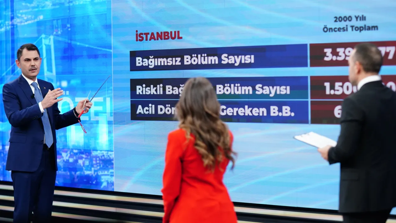 Muhalefet belediyelerine bir kez daha kentsel dönüşüm için iş birliği çağrısı yapan Bakan Kurum, programda şunları söyledi: Gelin, bu siyaseti deprem üzerinden yapmayın. Gelin hep birlikte İstanbul'u kurtaralım. İstanbul'u kurtarma seferberliğine ortak olalım. Gelin hep birlikte, dönüşmesi gereken yerle alakalı oturalım, istişare edelim, projelerimizi yapalım. Biz size, siz bize destek olun. Üç tane ben yapıyorsam bir tane de sen yap. Hep birlikte bu İstanbul'u kurtaralım. Yani bu bir seferberlikse hep birlikte yapılması gereken bir iş. Hep birlikte elimizi, gövdemizi taşın altına koymamız gereken bir durum. O yüzden ben buradan yine bu çağrımı yenilemek istiyorum. Yani hep birlikte bu mücadeleyi yapmak zorundayız. Üçlü sacayağı gibi; belediyesi, vatandaşı, Bakanlığı hep birlikte bu mücadeleyi yapalım. Ve İstanbul'un geleceğini, ülkemizin geleceğini hep birlikte kurtaralım.
