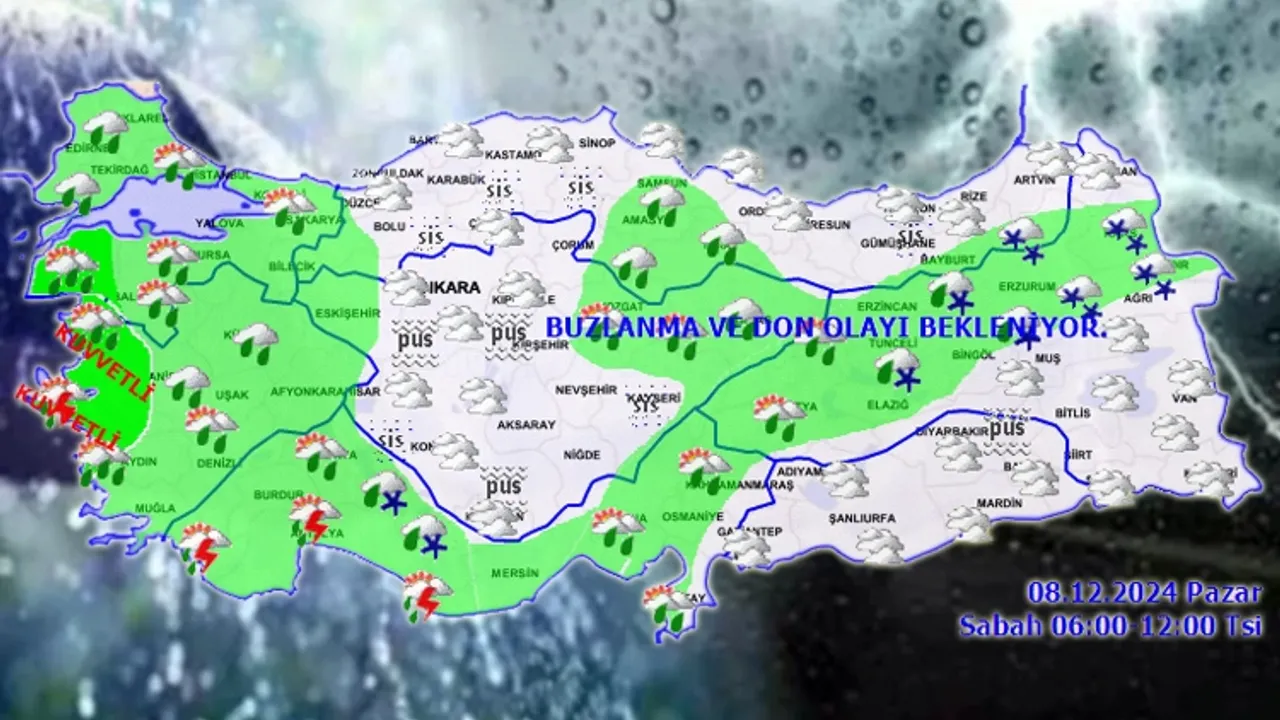 Türkiye'nin iç ve doğu kesimlerinde buzlanma ve don ile birlikte pus ve yer yer sis beklenirken, hava sıcaklığının yurt genelinde mevsim normalleri civarında seyredeceği tahmin edildi.