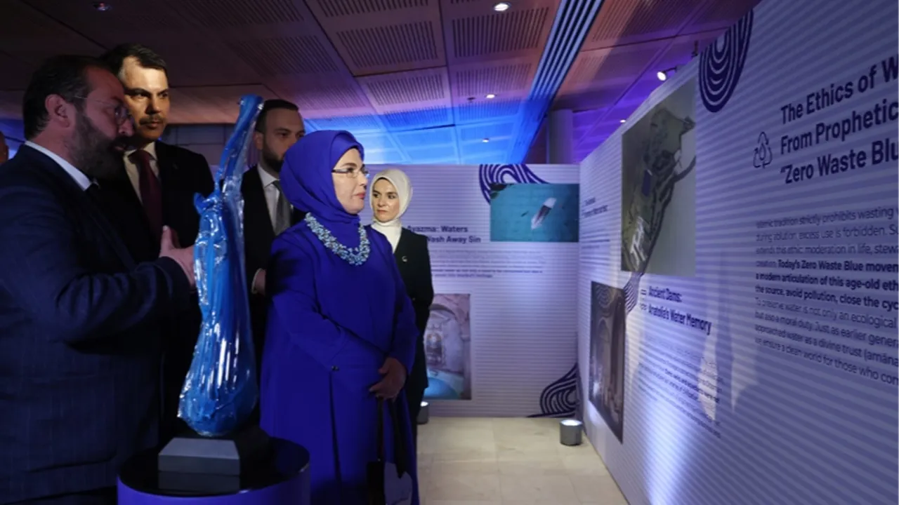 Cumhurbaşkanı Recep Tayyip Erdoğan'ın eşi Emine Erdoğan'ın himayesinde, Çevre, Şehircilik ve İklim Değişikliği Bakanlığı tarafından uygulanan Sıfır Atık Hareketi kapsamında, New York’ta “Sıfır Atık Mavi – Damla Damla” sergisi açıldı.ANKARA (İGFA) - Birleşmiş Milletler (BM) Sıfır Atık Yüksek Düzeyli Şahsiyetler Danışma Kurulu Başkanı Emine Erdoğan'ın himayesinde, Çevre, Şehircilik ve İklim Değişikliği Bakanlığınca uygulanan Sıfır Atık Hareketi kapsamında New York'ta "Sıfır Atık Mavi-Damla Damla" Sergisi açıldı.