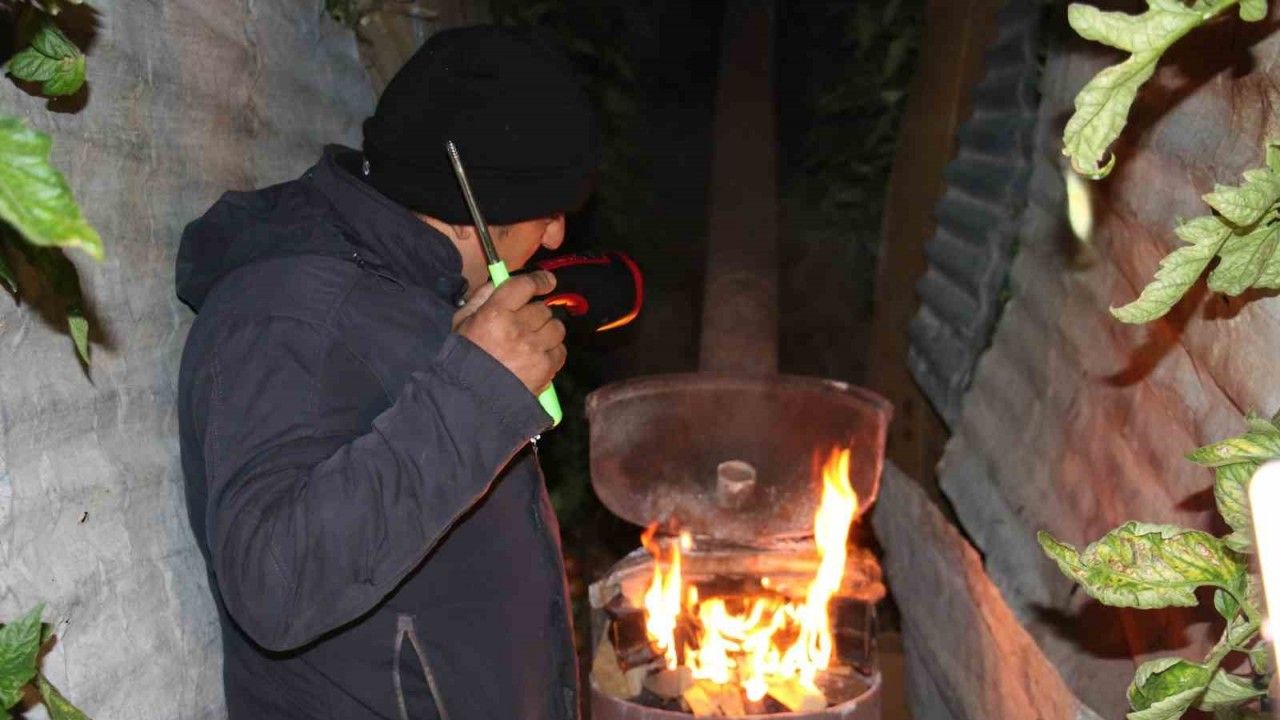 Seralarına bir hafta önce salatalık fidesi diktiklerini belirten Mesut Osman Yılmaz’da, etkili olan zirai dondan fidelerin etkilenmemesi için sobalarını yaktıklarını ve nöbet tutuklarını kaydetti.