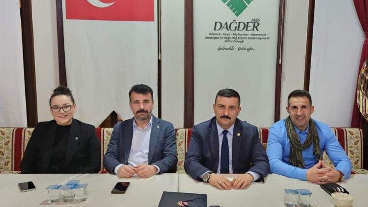 BURSA (İGFA) - İYİ Parti Bursa Büyükşehir Belediye Başkan Adayı Selçuk Türkoğlu ve İYİ Parti Osmangazi Belediye Başkan Adayı Orkun Özeller yerel seçim çalışmaları kapsamında parti teşkilat yöneticileriyle birlikte Orhaneli-Keles-Büyükorhan -Harmancık-Osmangazi’ye Bağlı Dağ Köyleri Yardımlaşma ve Kültür Derneği (DAĞDER) Başkanı İsmail Aydoğdu ve Yönetimini ziyaret etti.