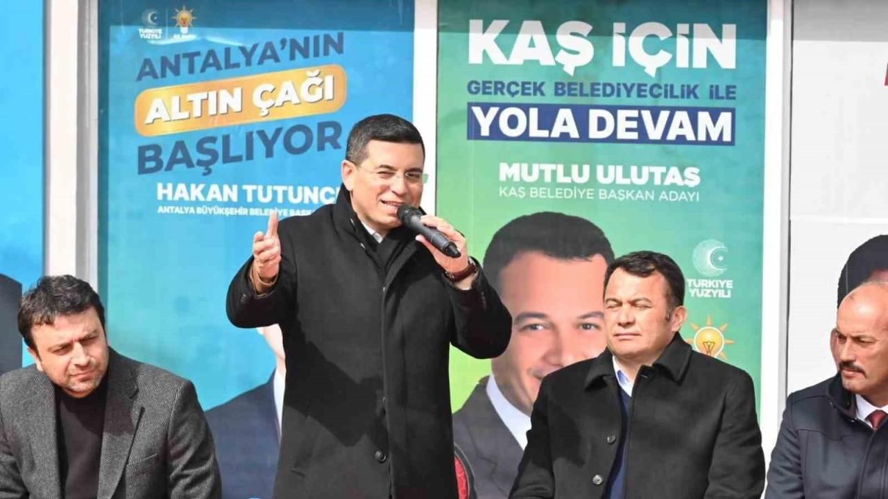 Tütüncü, kendisinin de bir ilçe belediye başkanı olduğunu hatırlatarak, ilçe başkanlarının büyükşehir belediye başkanının desteğini yanında hissedemezse yaptığı işlerin eksik kaldığını vurguladı. Büyükşehir desteği göremeyen ilçeleri tek kanatlı kuşa benzeten Tütüncü, “Geçtiğimiz 5 yılda Mutlu Ulutaş başkanımızın ortaya koyduğu çalışmalar, tek kanatlı bir kuşun ortaya koyduğu bir performanstı. Bütün bunlara rağmen Mutlu Ulutaş başkanımız, sizleri mutlu etmek için gece gündüz çalıştı, gayret etti. Kaş yeniden mutlu olacak. Kaş Belediye Başkanı Mutlu Ulutaş olacak, bu kuş tek kanatla uçmayacak, çift kanatlı uçacak“ dedi.